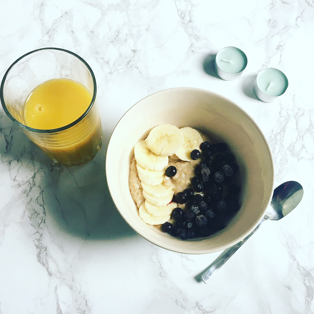 Püüan hommikuti kui vähegi aega on teha kaerahelbe- või neljaviljapudru. Kindlasti teen alati seda riisi- või mandlipiimaga, tavaline lehmapiim ei kuulu minu menüüsse juba mõnda aega. Õige ja magusa maitse annab juurde pool banaani ja peotäis endakorjatud mustikaid.