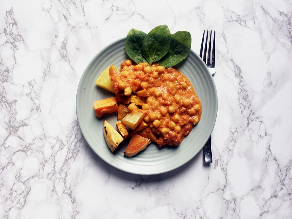 Vegan retsept: kikerherne-kookose karri bataadiga